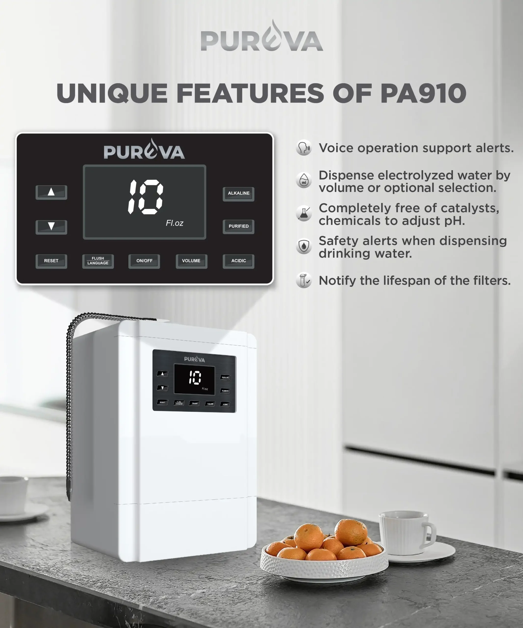 This feature not only improves water quality but also protects the device's lifespan, providing sustainable value to users. This helps the PUREVA PA910 alkaline ionized water purifier stand out among other products in its segment.