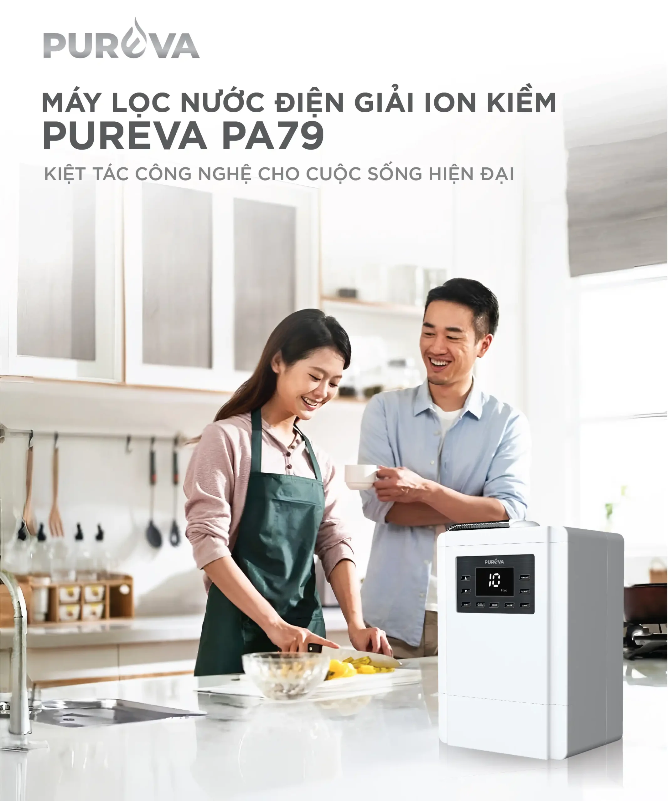 Sản phẩm này không chỉ đáp ứng nhu cầu về nước sạch mà còn nâng cao trải nghiệm sử dụng nhờ các tính năng thông minh và hiệu suất vượt trội. Hãy cùng khám phá chi tiết về PUREVA PA79 qua công nghệ điện phân tiên tiến, hệ thống lọc chuyên dụng, chỉ số ORP và Hydrogen lý tưởng, nhiều công dụng của các loại nước, thiết kế tiện ích vượt bậc.
