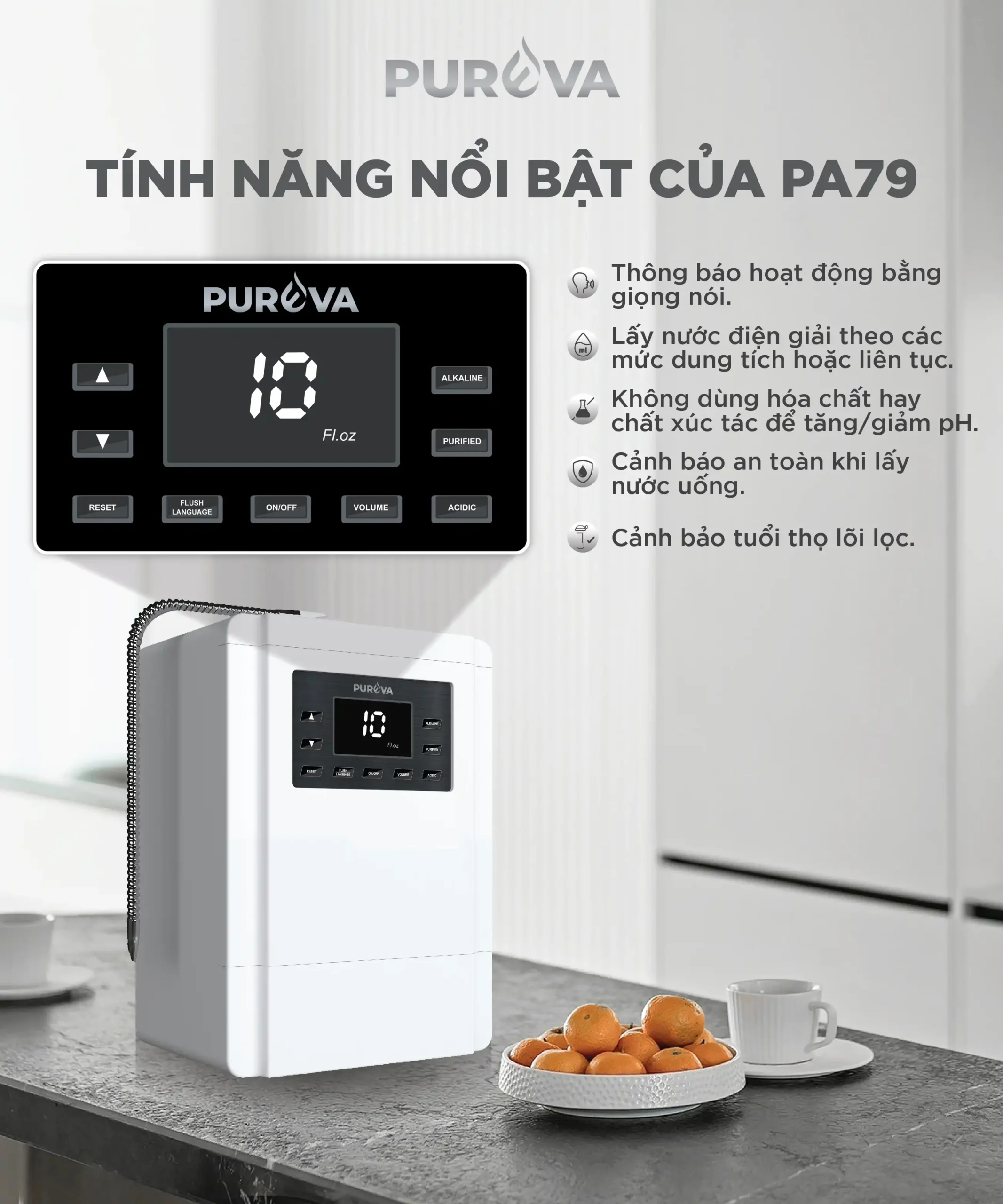 Máy lọc nước điện giải ion kiềm PUREVA PA79 không chỉ là một thiết bị gia dụng thông thường mà là biểu tượng của sự đột phá công nghệ. Với thiết kế tinh tế để bàn/treo tường, PUREVA PA79 mang đến giải pháp lý tưởng cho những ai tìm kiếm sự tiện nghi, chất lượng và phong cách trong không gian sống hiện đại.